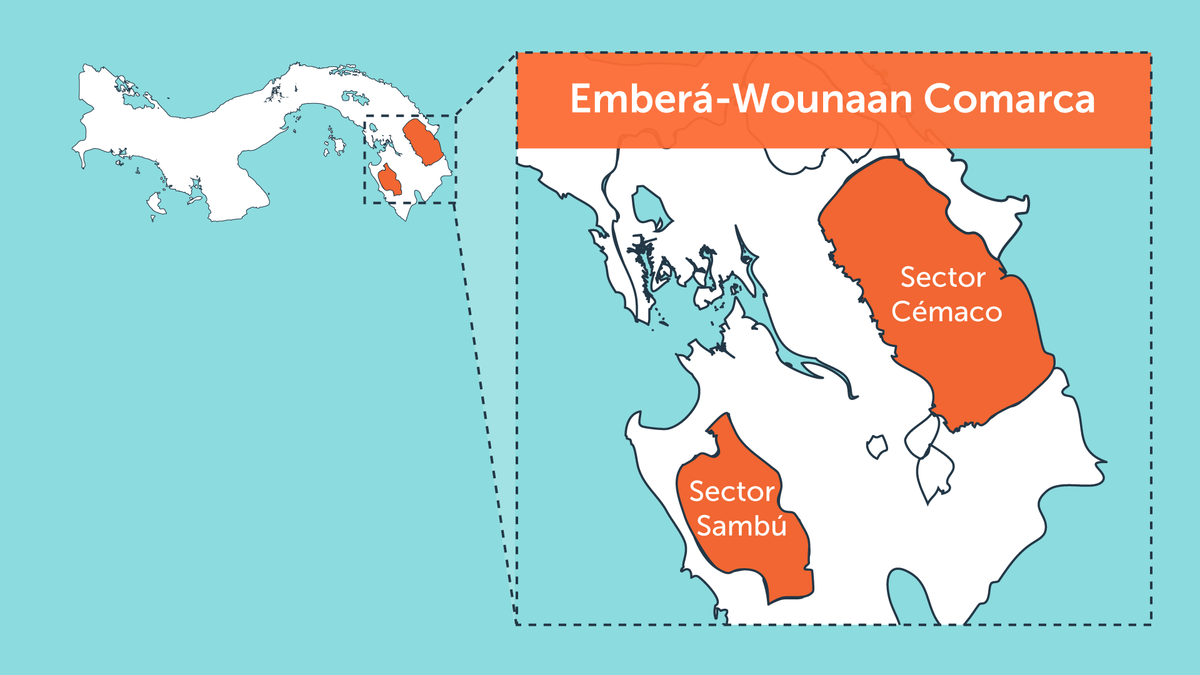 La Comarca Emberá-Wounaan abarca quinientas hectáreas y está dividida en cuarenta y dos comunidades con un total aproximado de nueve mil indígenas.